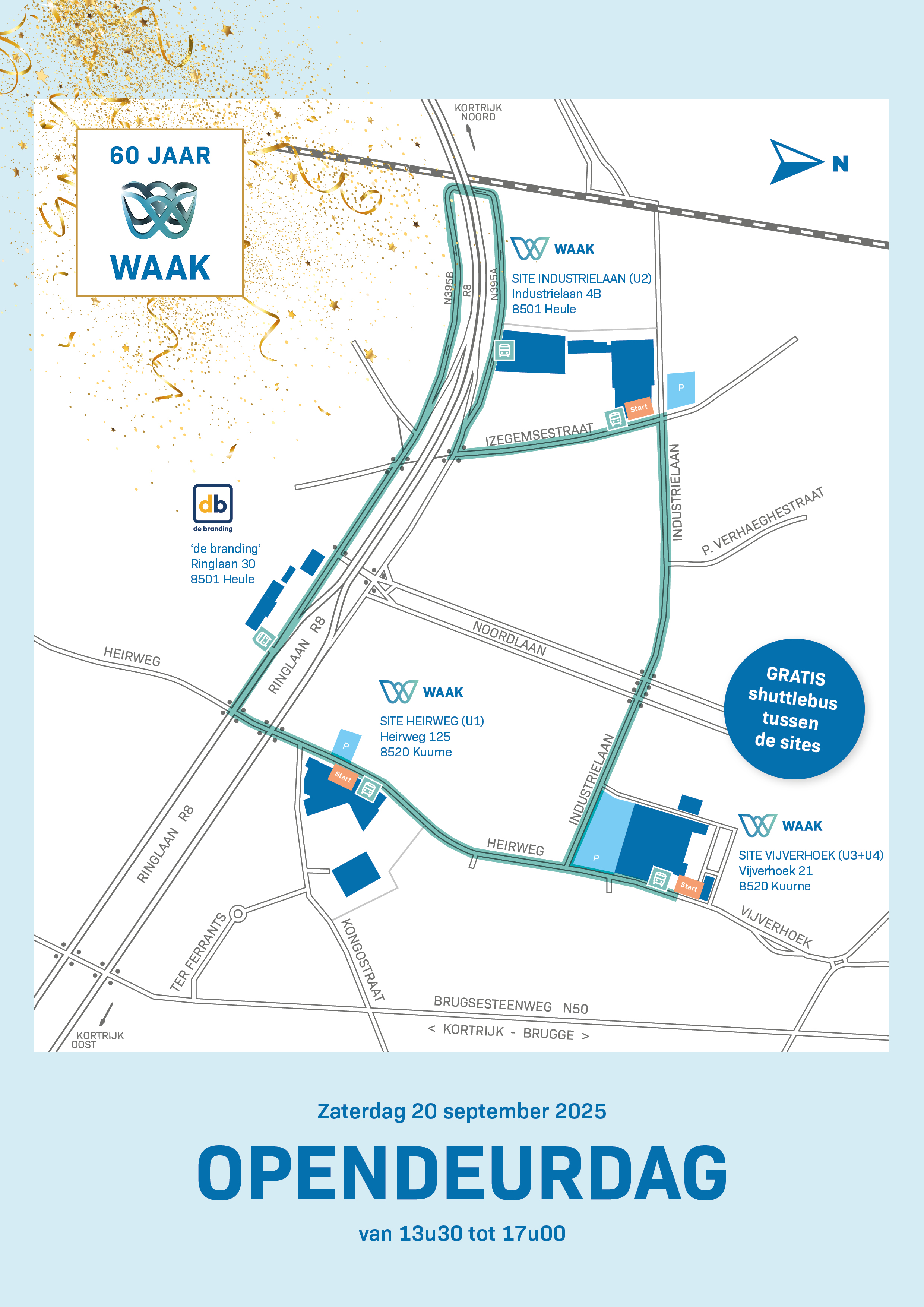 Op zaterdag 20 september 2025 opent WAAK van 13u30 tot 17u00 de deuren van al haar afdelingen: van Kabelassemblage tot Metaal- en Kunststofassemblage en onze Dienstenafdeling. Iedereen is welkom om een kijkje te nemen achter de schermen.